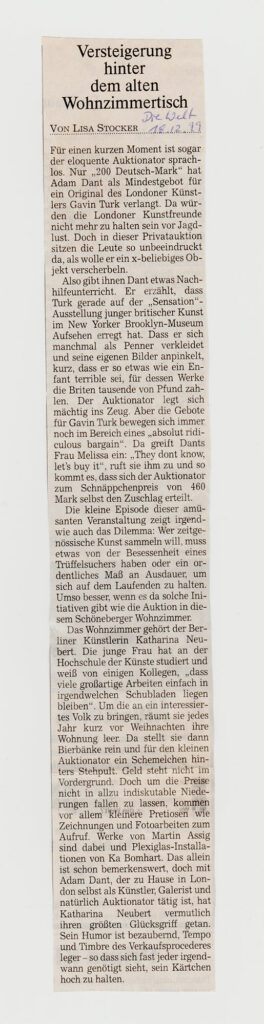 • Rückschau und Einordnung der selbstorganisierten Kunstszene der Neunziger in Berlin